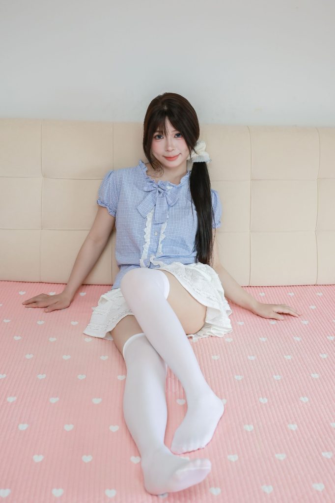 ❀服装:蓝格小衬衫 白色小短裙  厚白丝袜 黑色乐福鞋