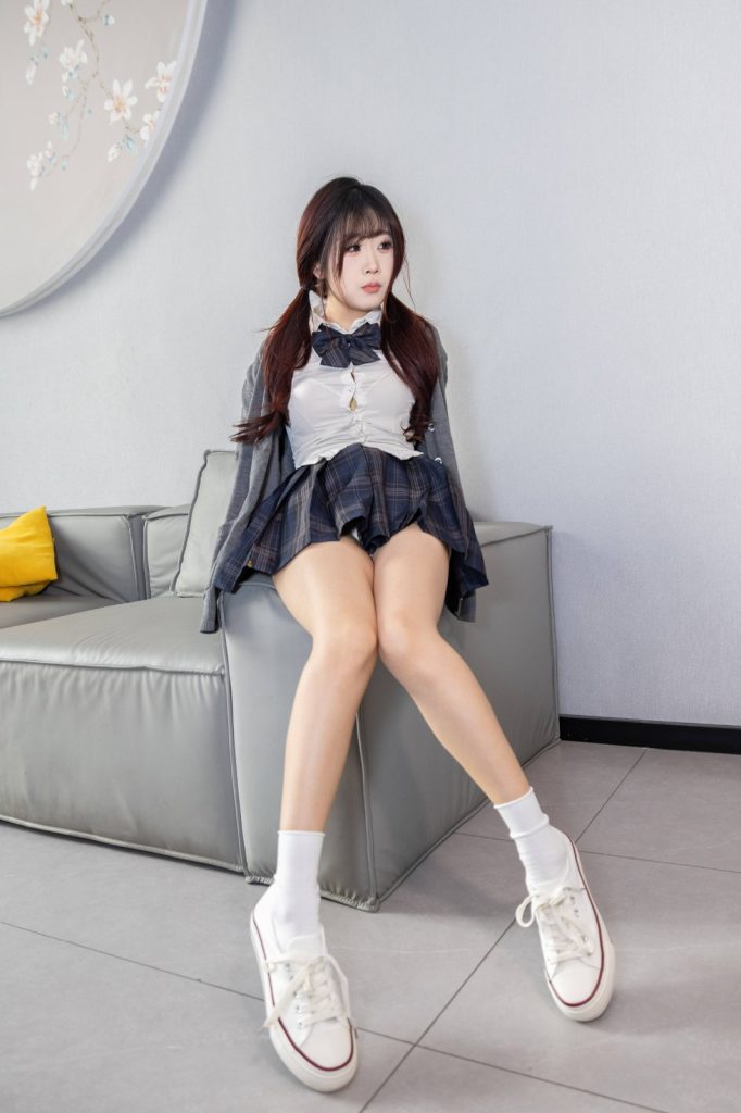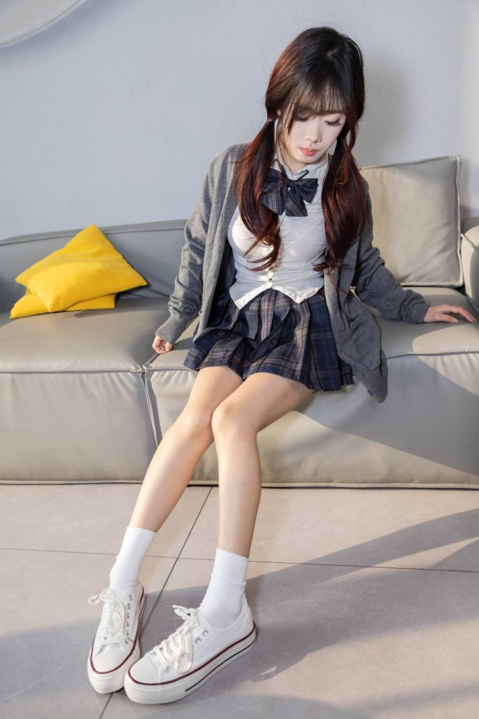 ❀服装:学生制服 jk短裙 白色棉袜 白色帆布鞋