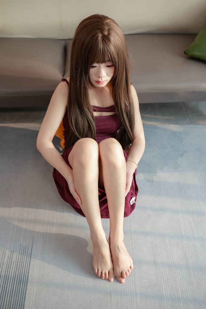 ❀服装:酒红色连衣裙 裸足  黑色高跟鞋