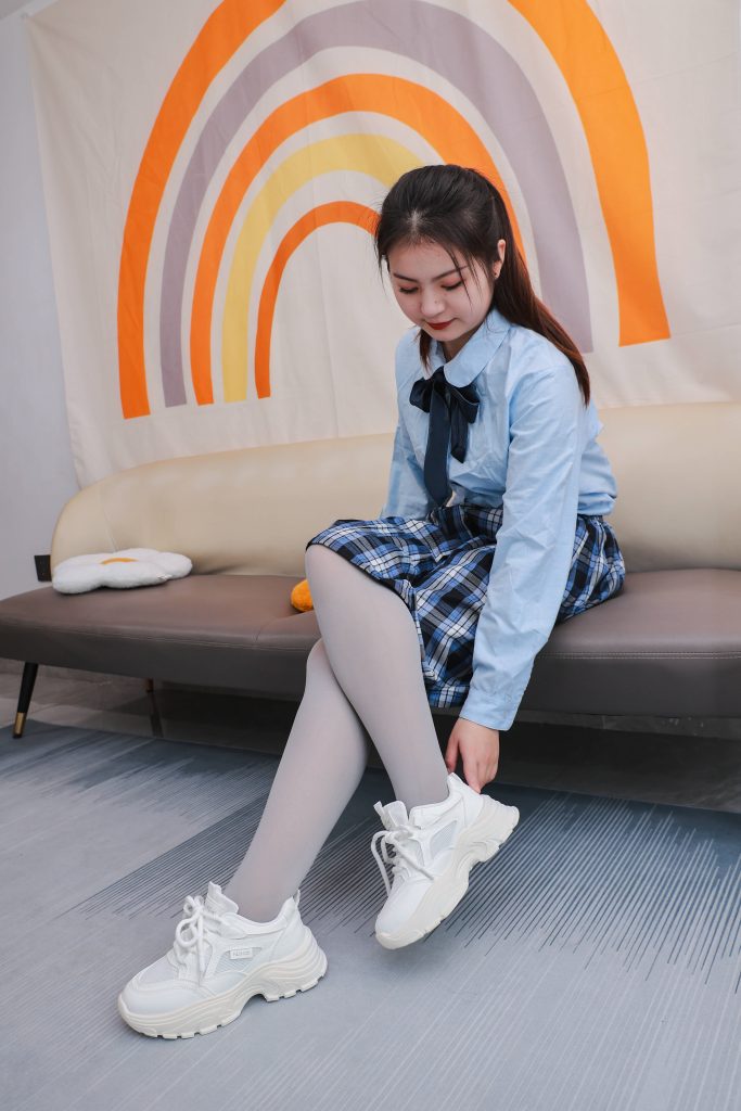 ❀服装:jk学院风制服 厚灰丝袜 白色运动鞋