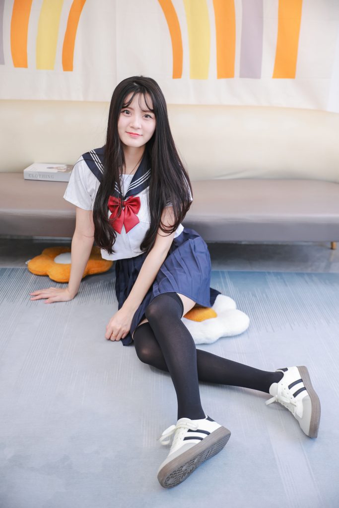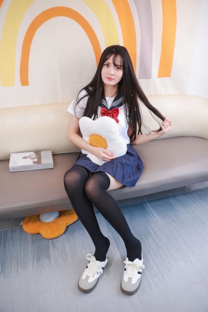 ❀服装:白蓝水手服 过膝厚黑丝 蓝色短裤 白色平地鞋