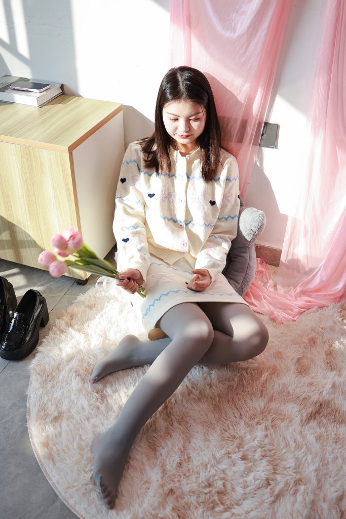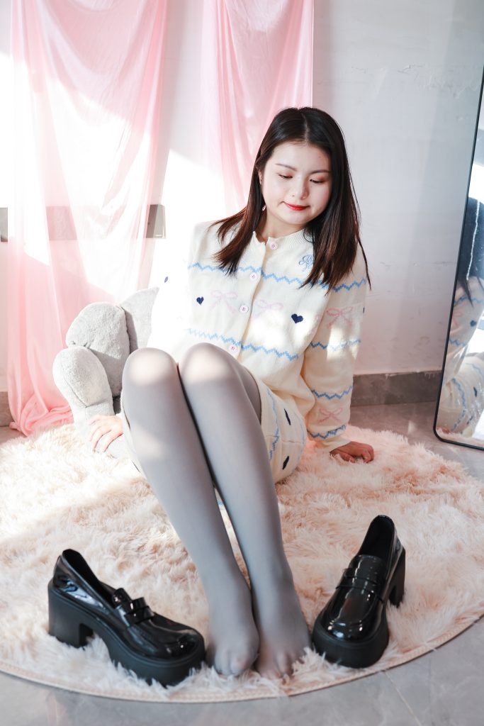 ❀服装:白色毛衣 白色短裙 薄灰丝  黑色乐福鞋