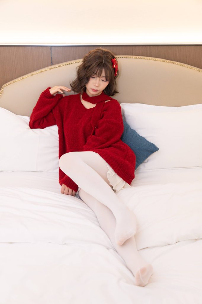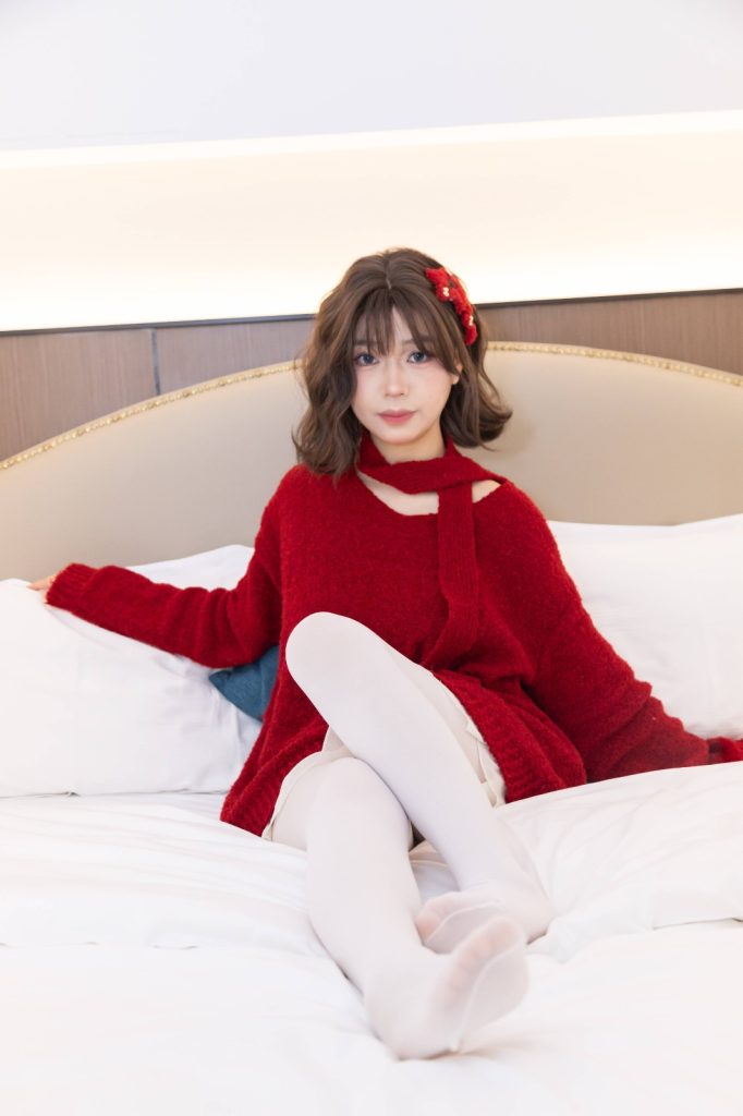 ❀服装:红色毛衣 小白裙 厚白丝袜 白色板鞋