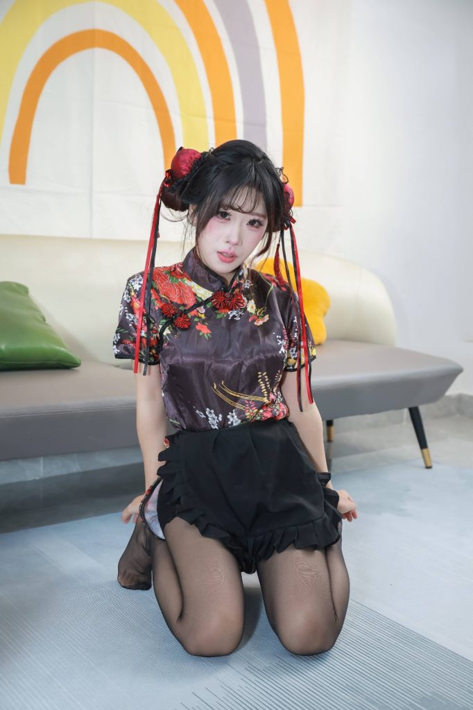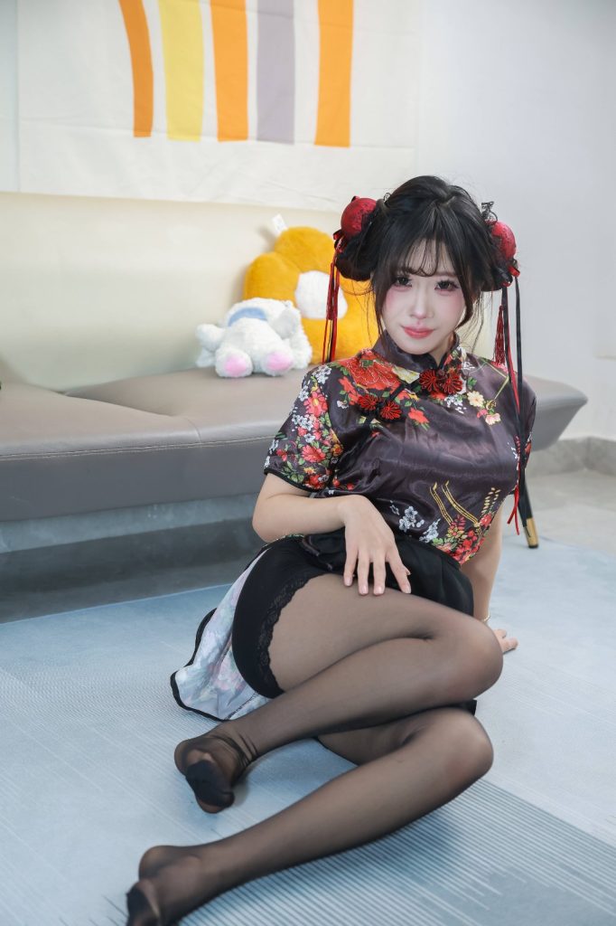 ❀服装:绣花旗袍  黑色丝袜 黑色增高鞋