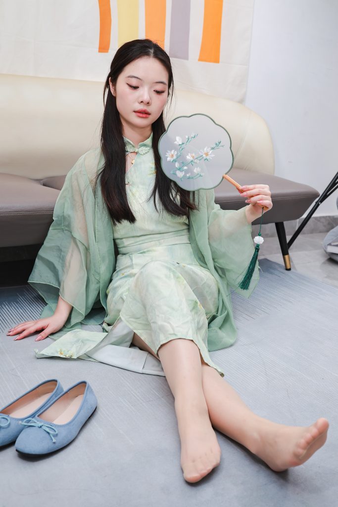 154期:薄肉丝,古风汉服,蓝色绣花鞋